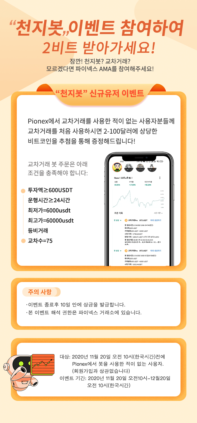 12월 20일까지 파이넥스 거래소 가입하고 거래봇 개설하면 최대 2비트를 주는 신규유저 이벤트를 진행중이라고 해요!