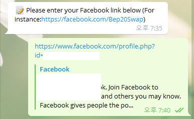 4. 페이스북 팔로우 ( 0.07 BEP 20 )