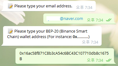 2. 이메일과 BSC 주소 입력