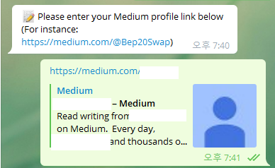 5. 미디엄 팔로우 ( 0.04 BEP 20 )