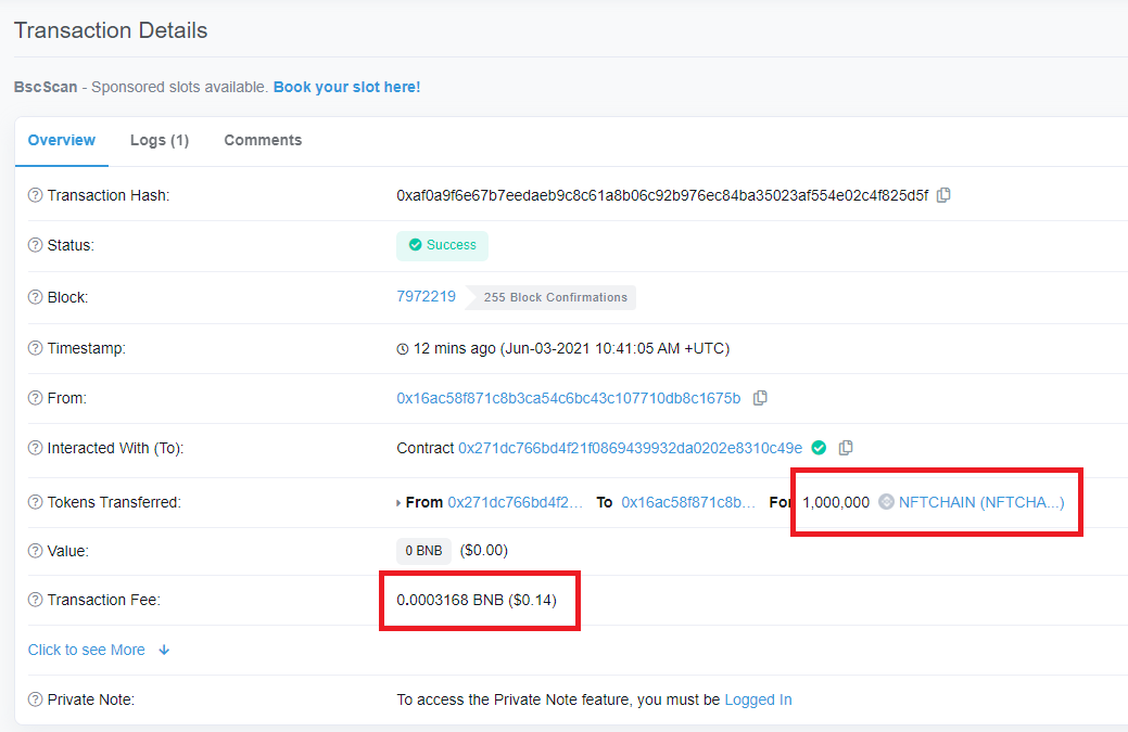 메타마스크에서 BNB가 수수료로 0.0003168( 약 $0.14 )가 들어갑니다.
