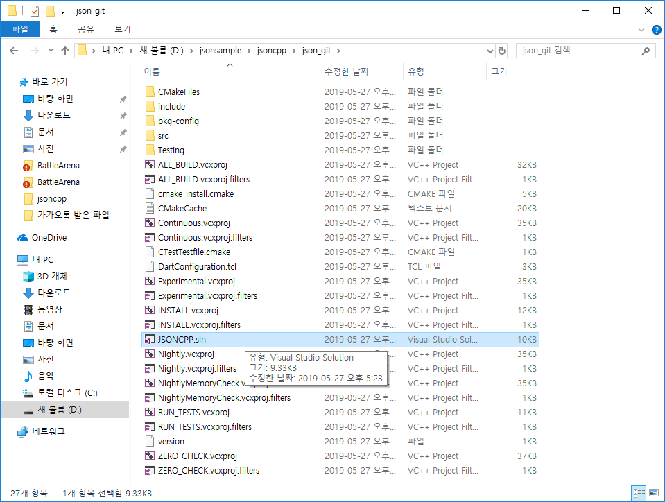파일이 나오면 jsoncpp.sin을 실행한다.