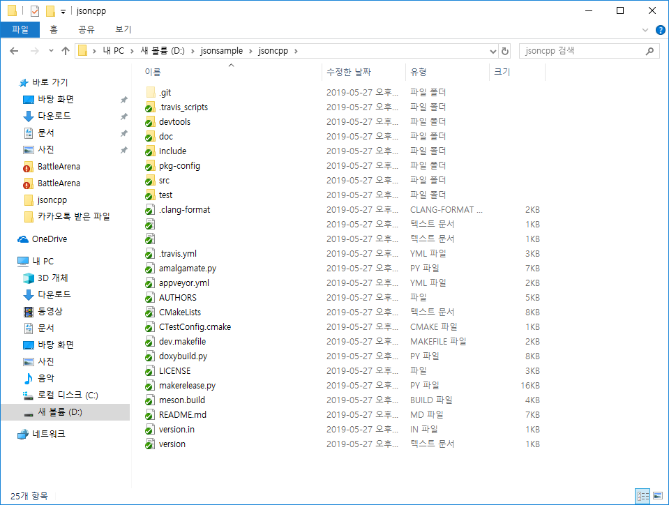 소스를 받는데 성공 했으면 위처럼 파일이 지정한 경로로 들어와 있는 것을 볼 수 있다.