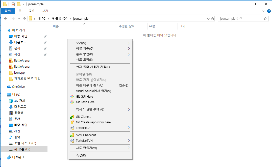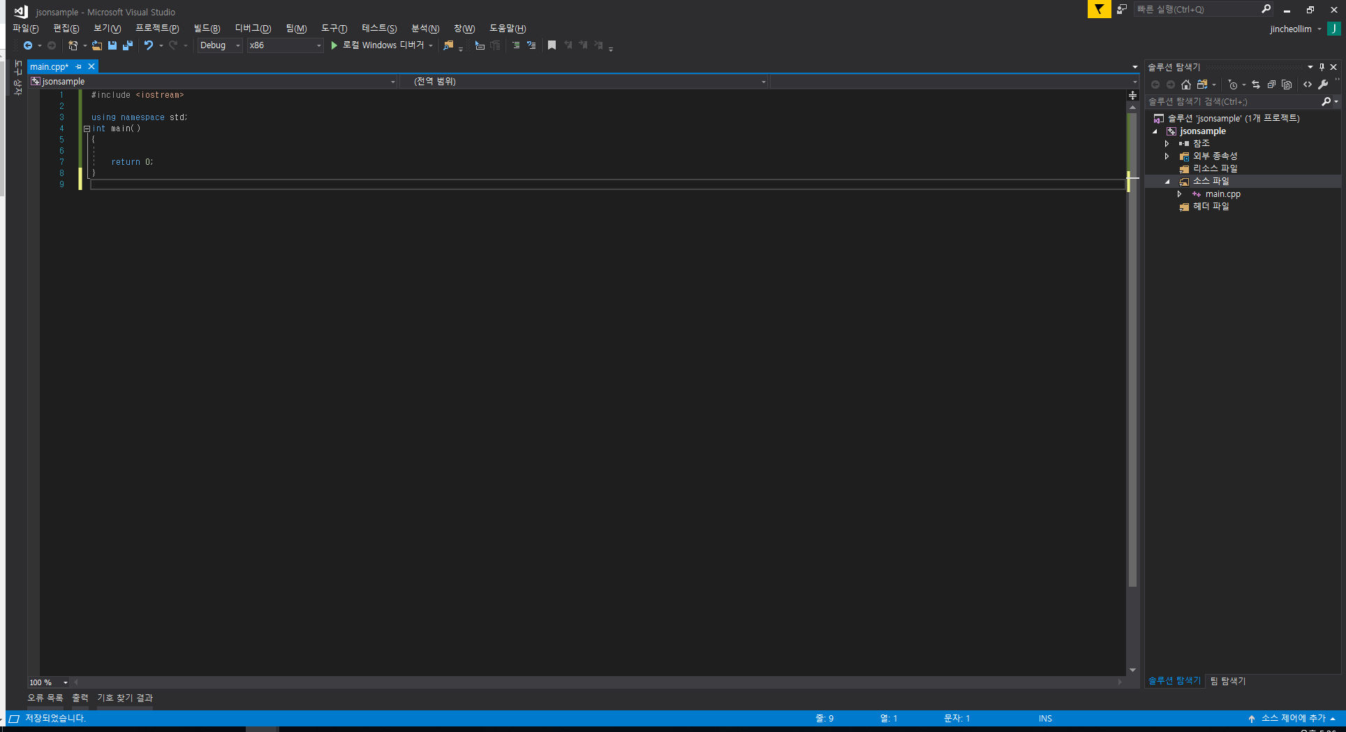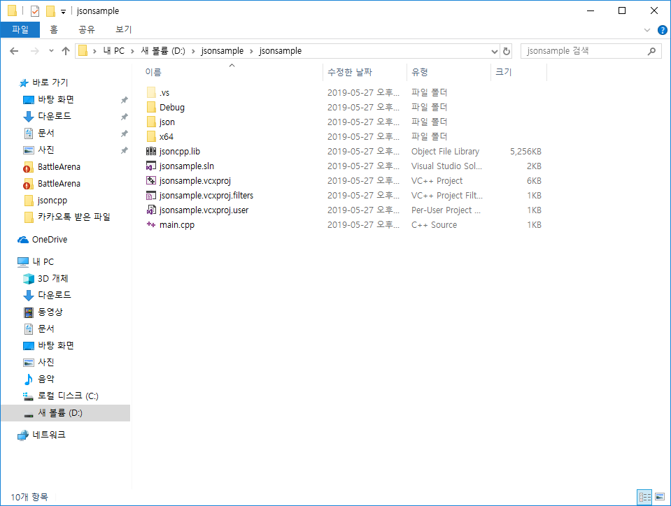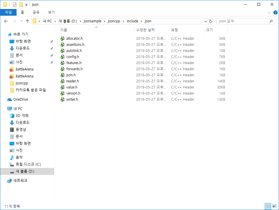 처음 받은 git repository에서 include 폴더의 json폴더와 jsoncpp.lib를 원하는 새로 만든 프로젝트가 있는곳에 복사한다.